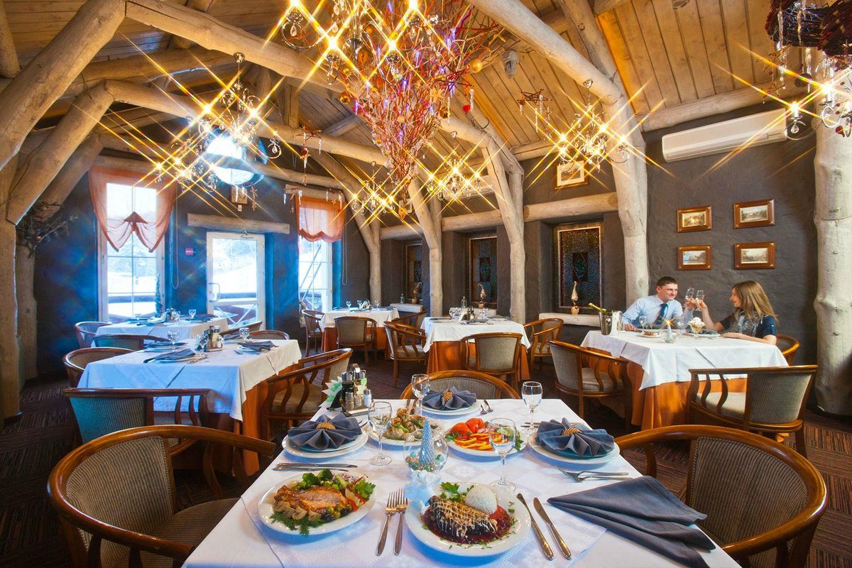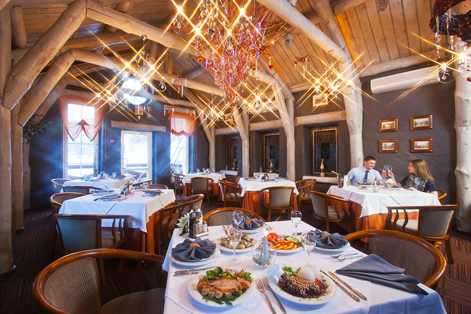 Меню ресторана олицетворяет его философию - сохранение кулинарных традиций, использование натуральных продуктов и эко-дружественность. В ресторане наши гости могут насладиться напитками из свежих ягод, различными закусками, включая маринованные грибы, свежие овощи, блинчики, изысканные рыбные и мясные блюда. Бар ресторана предлагает широкий ассортимент напитков на любой вкус.