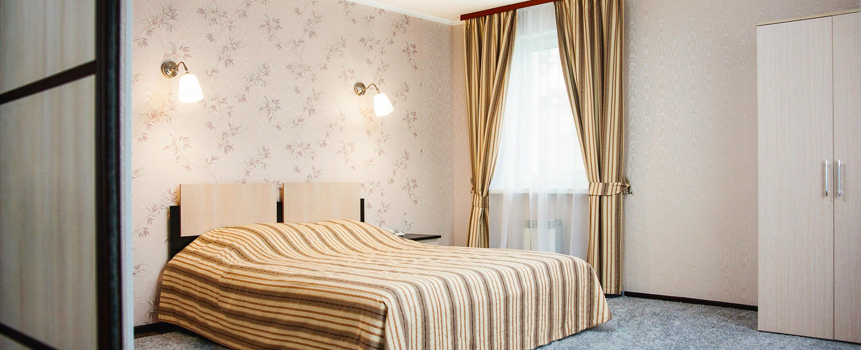 В номере: вешалка, зеркало, кровати односпальные /одна двуспальная кровать, прикроватные тумбочки, стол, стулья, шкаф, индивидуальная система обогрева, кондиционер, микроволновая печь, мини-холодильник, сейф, телевизор, телефон, чайная станция, электрочайник