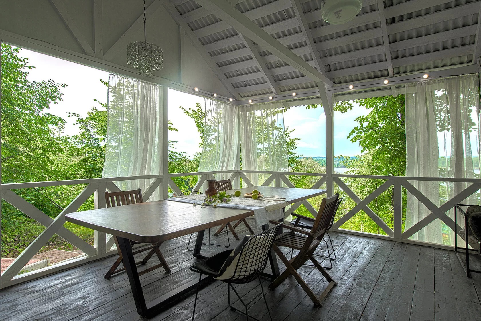 Комфортабельная оборудованная беседка на горе с видом на Волгу.