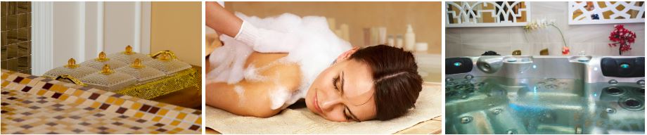 - Включает посещение джакузи, прогревание в хаммаме, скрабирование, аромассаж, массаж головы.